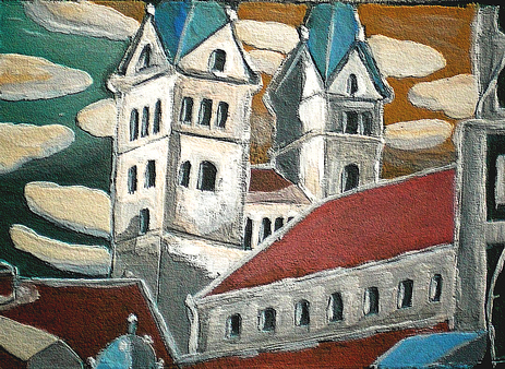 GemäldeDer Bau der Liebfrauenkirche begann unter Arnulf der 1005 einen Stift gründete. An der Kirche scheint fortwährend gebaut worden zu sein bis schließlich 1146 n. Chr. der Grundstein für den heutigen Neubau gelegt wurde. Vom Gründungsbau blieben beide Untergeschosse des Westturmriegels. Wesentliche Bauteile des heutigen Gebäudebestands wurden bis ins 13. Jh. gefertigt. Darunter Chorschranken mit Stuckreliefs erbaut um 1200.
